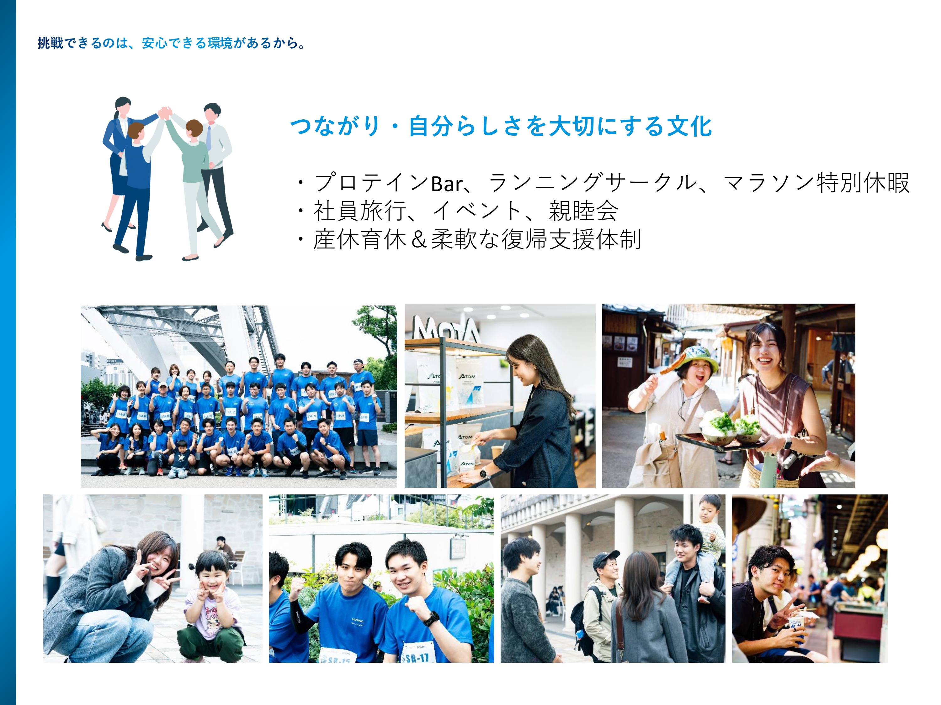 プロテインの社割制度及びプロテインBarの利用、産休育休制度など